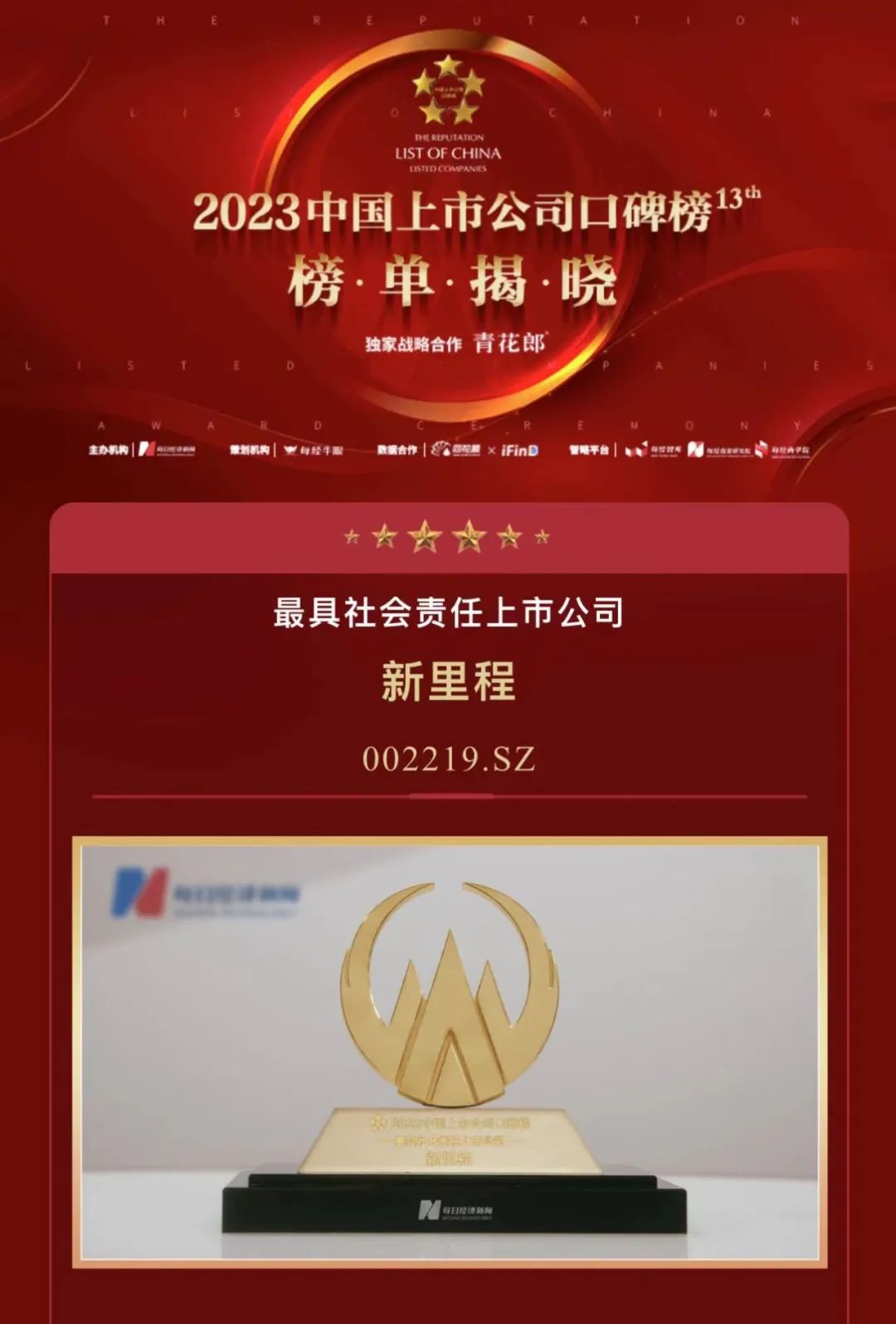 11月17日,6776永利集团在“2023第十二届中国上市公司高峰论坛”上荣获“最具社会责任上市公司”称号。