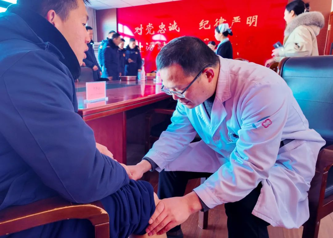 2月8日(农历正月十一),春寒料峭,盱眙县中医院组织了由多位高年资医护专家组成的健康服务团队,走进盱眙县消防救援大队,开展健康咨询和中医技术体验活动。针对消防指战员们比较常见的颈肩腰腿痛问题,专家们详细讲解及现场演示,让他们明白如何用中医诊疗技术缓解肌肉劳损、促进血液循环。