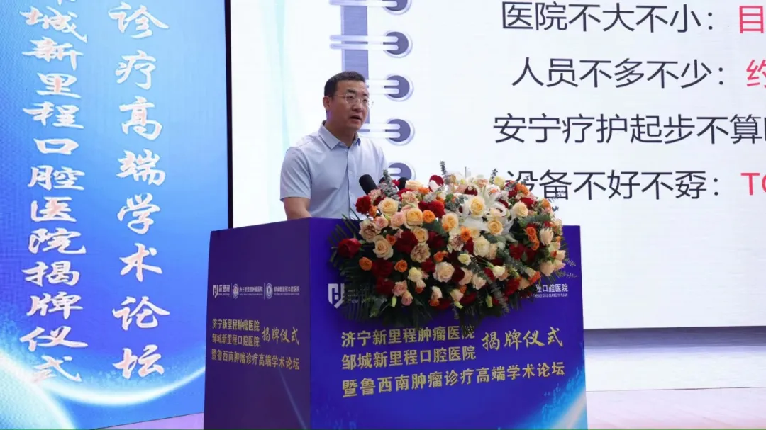 济宁市卫健委二级调研员王太晗发表致辞说,济宁6776永利集团肿瘤医院、邹城6776永利集团口腔医院的揭牌成立,将进一步丰富济宁市卫生健康事业拼图,助推医疗高地建设,也必将为济宁市乃至鲁西南地区患者提供更为优质的医疗服务。济宁市卫健委将不遗余力地支持两家医院发展,也希望两家医院以此为契机,积极引进先进理念、管理模式,全面提升医疗服务、教学科研、临床试验、疾病防控等方面的综合实力,建成省内一流专科医院,让更加优质的医疗服务惠及广大人民。